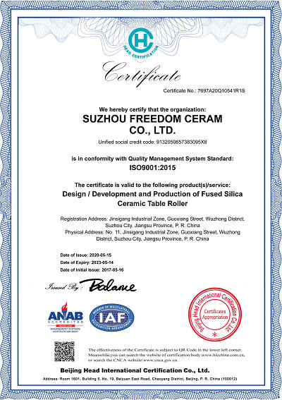 Freedom Ceramics ha establecido y dirigido un equipo de expertos en el país y en el extranjero con una rica experiencia laboral y conocimiento de la industria cerámica, y está comprometida con la creación de un grupo de tecnología cerámica líder en el mundo. Estamos comprometidos a servir a los clientes de todo corazón, adhiriéndonos al espíritu de innovación, siempre adhiriéndonos al concepto de enfocarnos en los beneficios del cliente, enfocándonos en la calidad del producto y el servicio postventa. En la actualidad, Fred Ceramics ha ocupado una cierta participación en el mercado interno y externo. Los principales productos de la empresa son: mesa de rodillos de cerámica para línea de vidrio flotado, mesa de rodillos de cerámica para horno de templado horizontal, dispositivo de cerámica para la industria metalúrgica de hierro y acero, crisol de sílice fundida, etc.